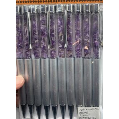 Pen - Blue Ink, Silver color body and Crystal chips - 10 pcs Pack - Amethyst