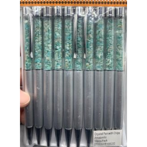 Pen - Blue Ink, Silver color body and Crystal chips - 10 pcs Pack - Amazonite