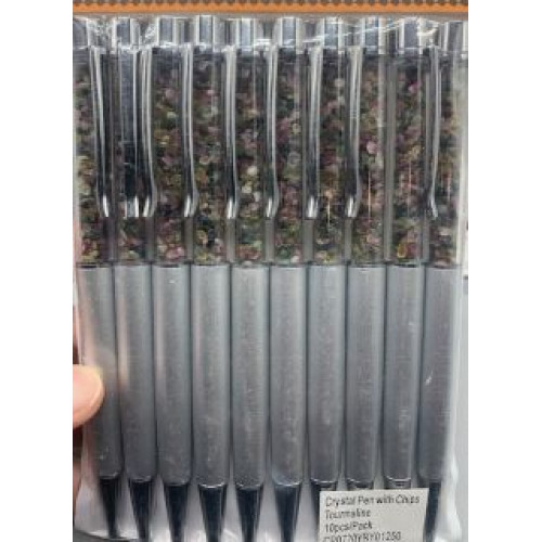 Pen - Blue Ink, Silver color body and Crystal chips - 10 pcs Pack - Tourmaline