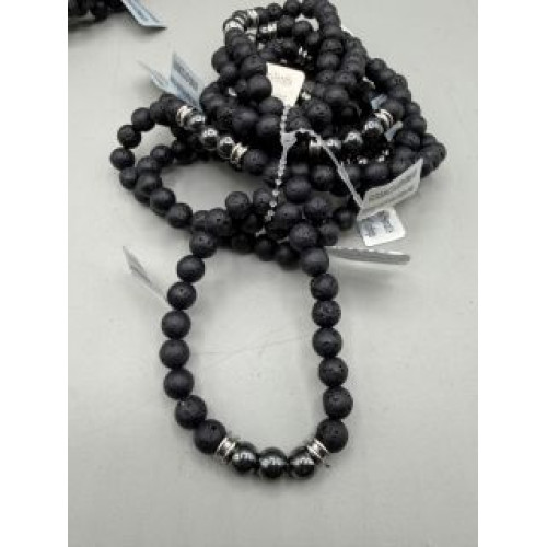 • 8 mm Gemstone Round Bead Bracelet - 10 pcs pack - Volcano Rocks w 3 Hematite Beads