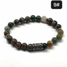 8 mm Gemstone Round bead bracelet with Stainless Steel Accessories - Viking Rune 9 JERA - 5 pcs pack - Fancy Jasper, Alabastro Jasper