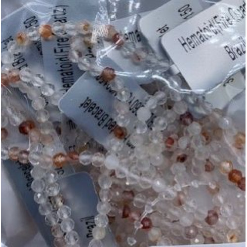 3 mm Faceted Gemstone Stretch Bracelet - 10 pcs pack - Hematoid (Fire Quartz)