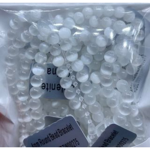 3 - 4 mm Gemstone Round Bead Bracelet - Selenite - 10 pcs Pack